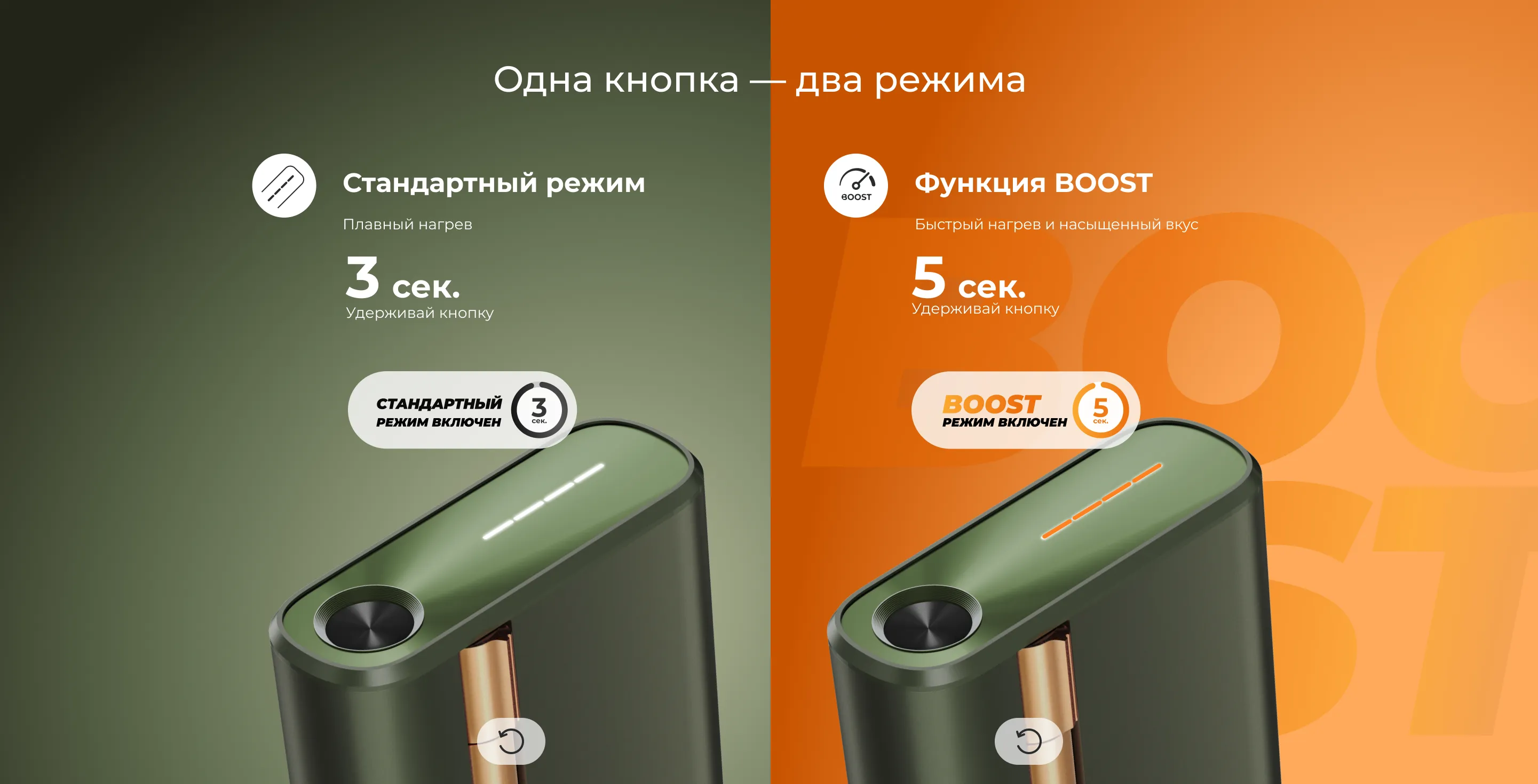 Интерактивные элементы: переключение между режимами нагревания и BOOST