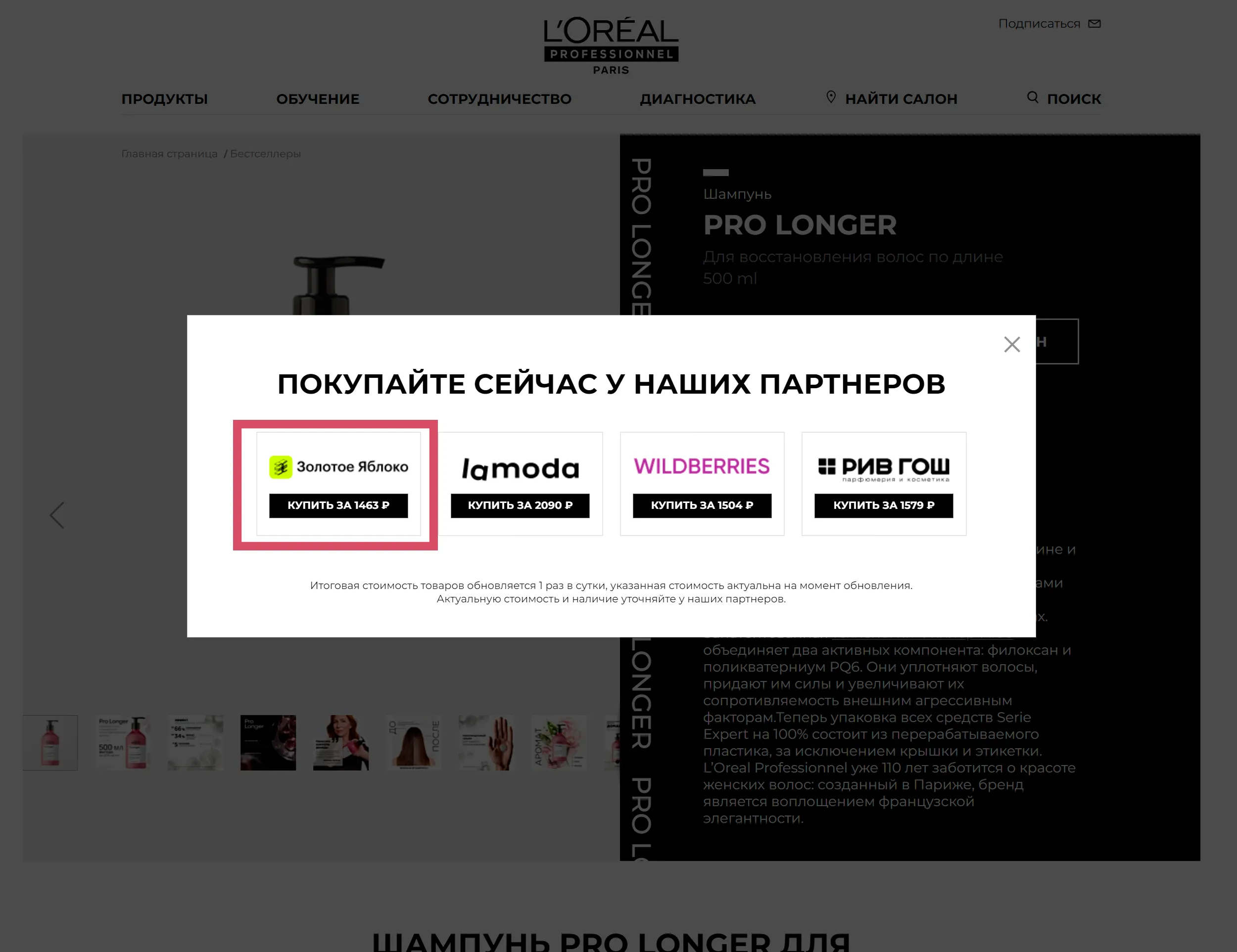 Удалось решить задачу с прекращением прямых продаж продукции на брендовых сайтах и онлайн-проектах компании. При этом сохранился трафик, а также привычная логика совершения онлайн-заказа пользователями на сайте