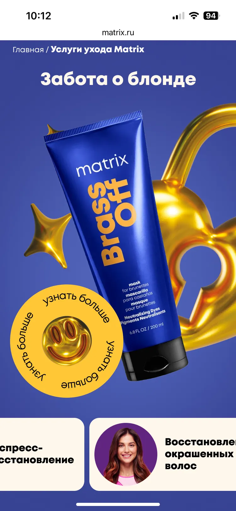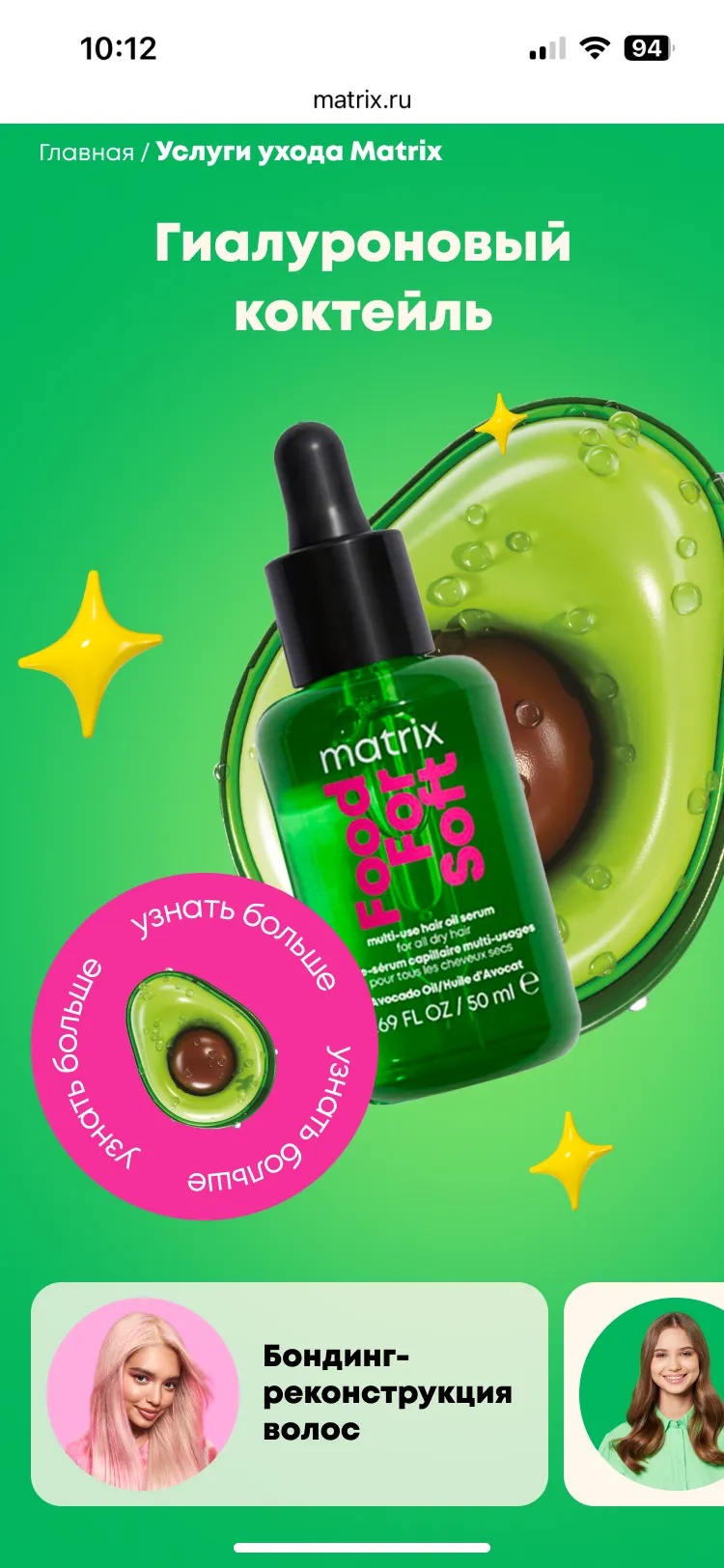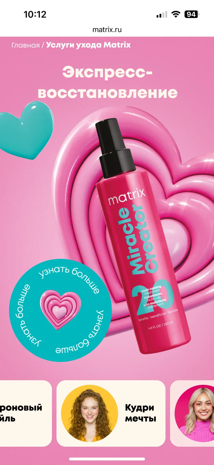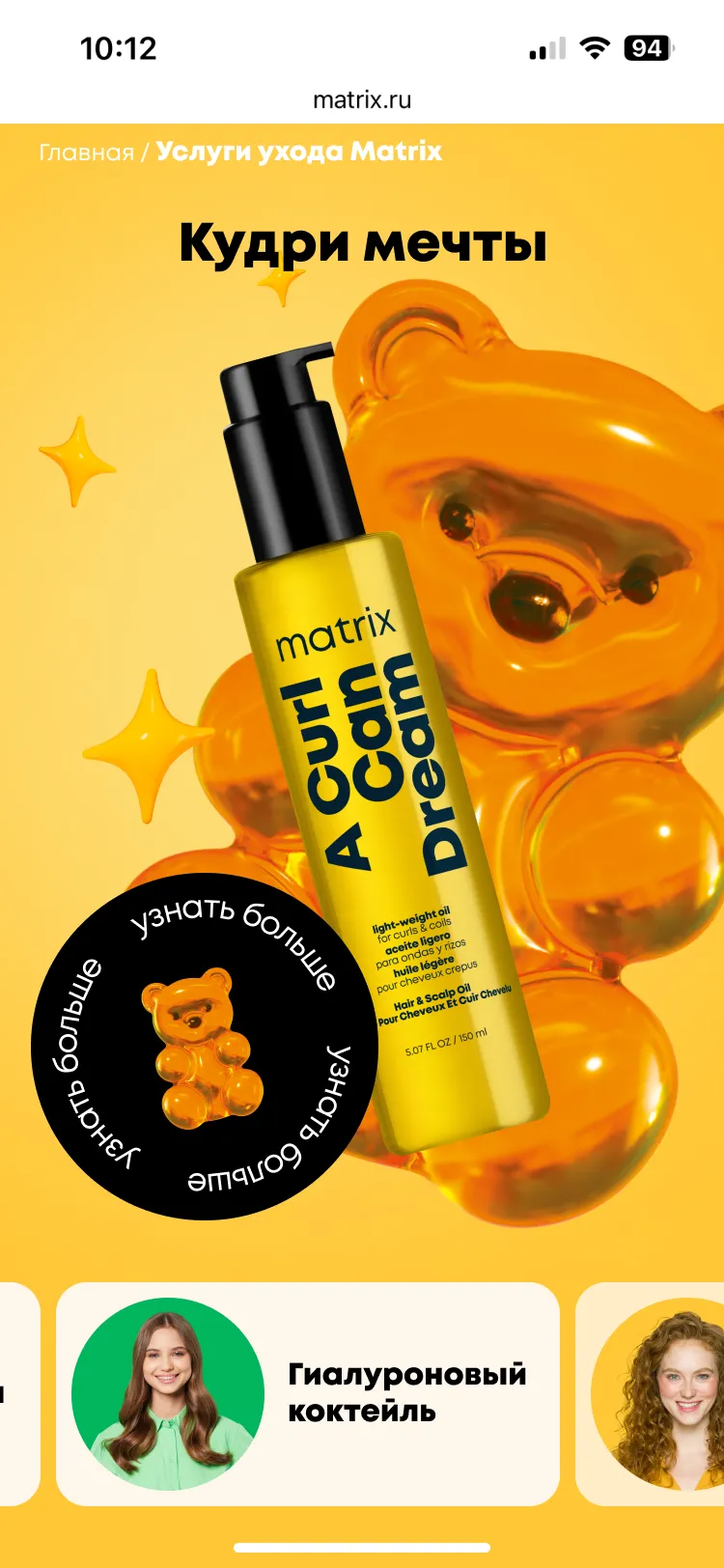 Mygento предстояло разработать промо-сайт, который объединял бы информацию о широком спектре профессиональных услуг Matrix, группируя их по категориям, связанным с различными типами волос и задачами ухода.