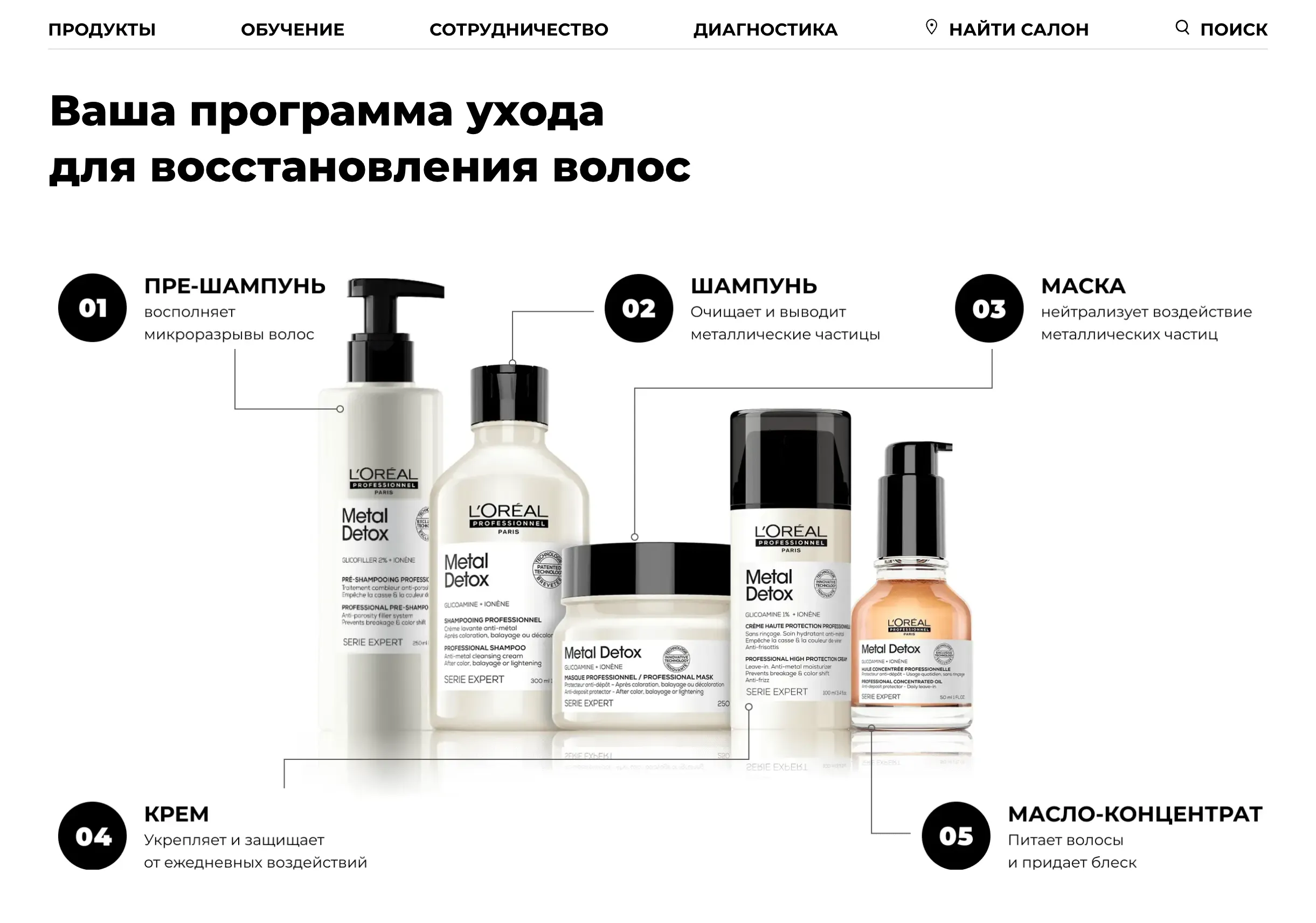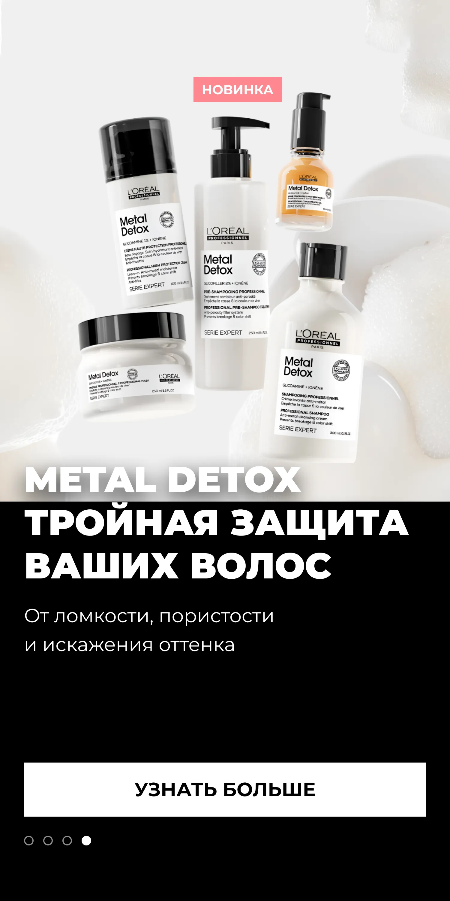 Дизайн промо-сайта подчеркнул ключевые преимущества продуктов Metal Detox, такие как защита волос от ломкости и сохранение насыщенности цвета. Мы использовали крупные изображения, текстуры продуктов и интерактивные блоки для демонстрации их свойств и применения.