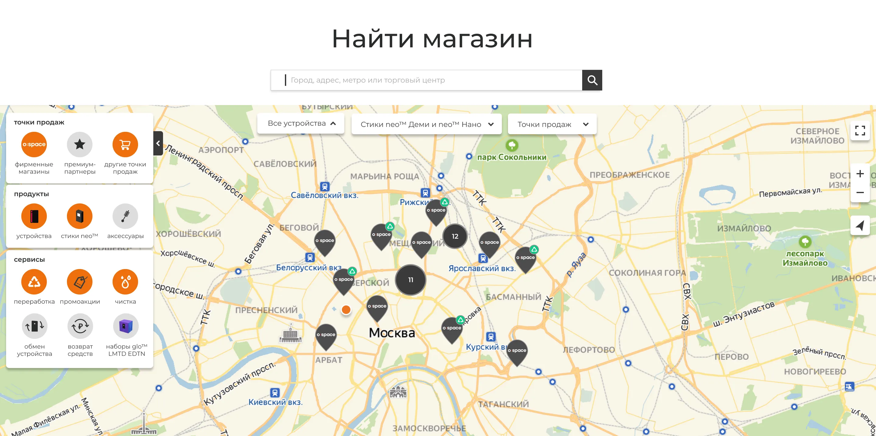 - разделы “Где купить” с картой ближайших магазинов