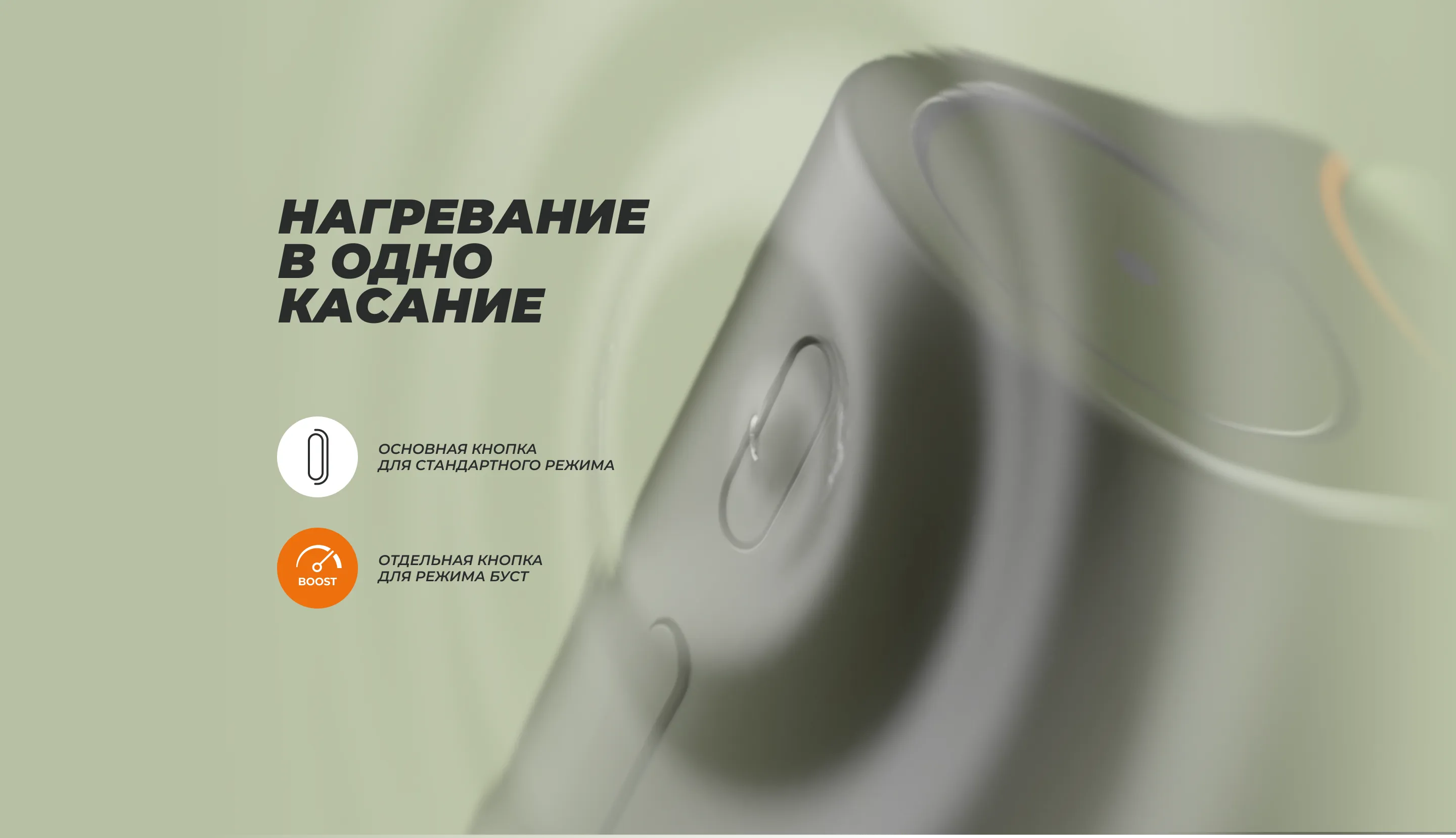 Интерактивные элементы: переключение между режимами нагревания и BOOST