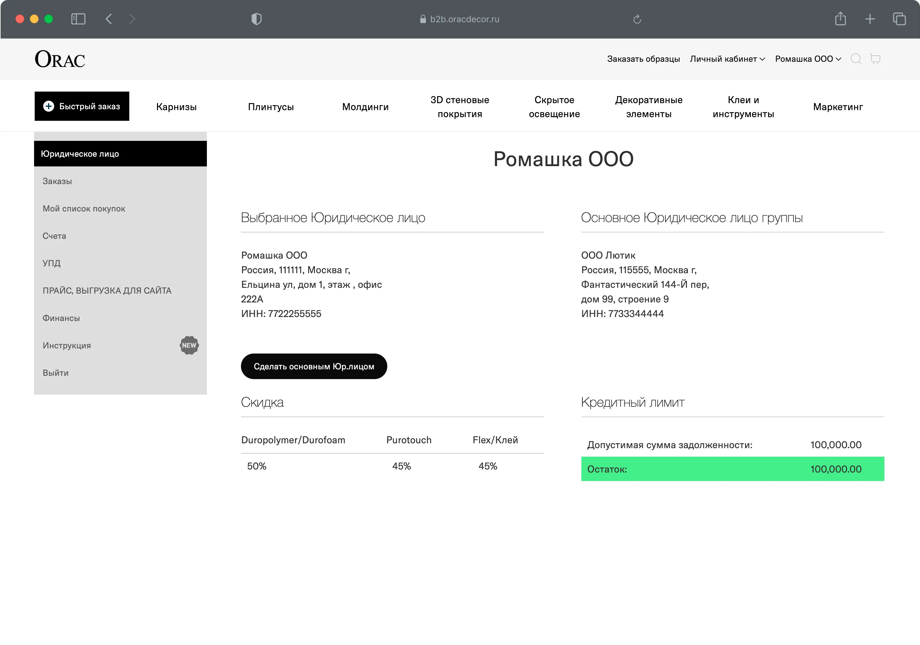 Задача: оцифровать процесс B2B-сделок, минимизировать зависимость процесса от человеческого фактора, повысить прозрачность и эффективность бизнеса: интегрировать дилеров и дистрибьюторов в единую систему логистики и продаж ORAC, обеспечить конечных участников B2B продаж — B2C компаниям возможность самостоятельного оформления и отправки заказов дилерам и/или дистрибьюторам, предоставить возможность заказа любых наименований и в любом количестве.